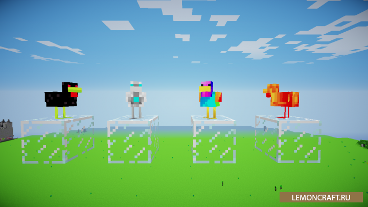 Мод на враждебных куриц LDShadowLady's Chicken Dungeons добавляет в игру новые виды куриц, которые будут появляться в новых тематических подземельях. Всего в игре появится 4 вида новых животных, которые станут вам настоящими врагами. Структуры, где будут спавниться данные мобы, встречаются довольно редко, что повысит интерес к исследованиям. Куры несут яйца, собрав которые вы сможете создать по настоящему уникальный меч.